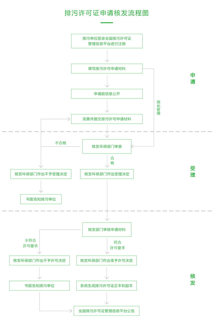 (一)實(shí)行排污許可重點(diǎn)管理、簡化管理的排污單位在國家平臺(tái)填報(bào)和提交排污許可證申請表,并向核發(fā)部門提交通過國家平臺(tái)打印出來的書面申請材料。核發(fā)部門對滿足條件的排污單位依法核發(fā)排污許可證。