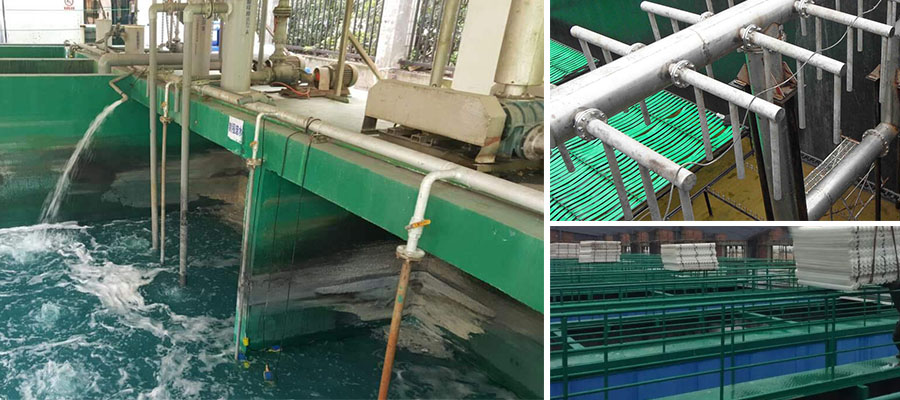 其次,在池體深度和橫梁尺寸問題上,我們在設計時考慮到池體深度有限,膜架均為定制;雖然池內存在橫梁,但我們的膜組件尺寸剛好匹配,很好的解決了布局問題。