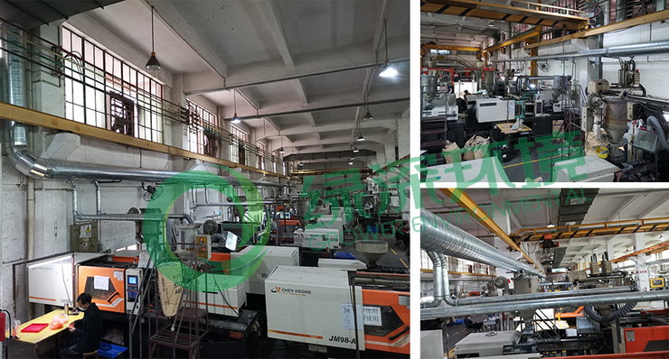東莞某磨具磨料公司位于東莞市厚街鎮(zhèn),是一家專業(yè)從事研磨材料、磨具、無紡布、不織布的集研發(fā)、生產(chǎn)、銷售為一體的大型高新技術(shù)企業(yè)。該廠在生產(chǎn)過程中設(shè)有注塑工序,有一定量的廢氣外排,廢氣隨空氣的流動而擴(kuò)散于大氣中,能通過人體呼吸或直接作用人體,對人體的呼吸系統(tǒng)、血液、心肺、肝臟、黏膜、眼睛、神經(jīng)等造成傷害,也會通過皮膚直接傷害人們。所以特委托我公司對該公司的這一工藝進(jìn)行注塑機(jī)廢氣治理。