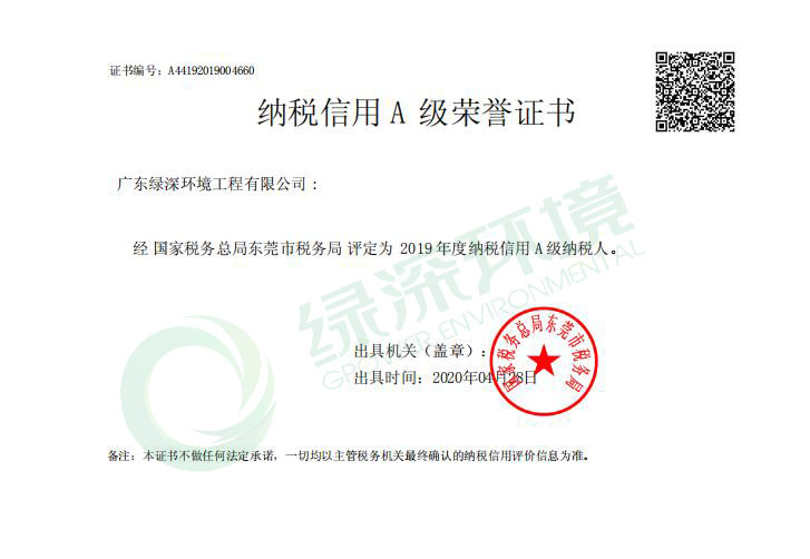 近日,國(guó)家稅務(wù)總局東莞市稅務(wù)局系統(tǒng)公布了2019納稅信用評(píng)價(jià)工作情況,綠深環(huán)境憑借誠(chéng)信納稅的良好信譽(yù),被評(píng)為“2019年度納稅信用A級(jí)納稅人”,并榮獲了《納稅信用A級(jí)榮譽(yù)證書》。