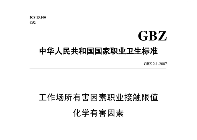 ②GBZ 2.1-2007 工作場所有害因素職業接觸限值 化學有害因素