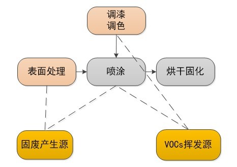 對于涂裝行業,產生廢氣的主要有兩個環節:噴涂環節和烘干環節。