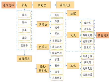 填埋是一種常用的危險廢物處理技術,具有經濟、處理量大、能耗小的特點。填埋場的選址及填埋的預處理是填埋的關鍵,常用的填埋預處理技術如下: