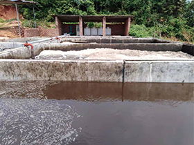 原水→格柵→有機肥發酵→廢液調節池→厭氧→MBR生物反應器→出水