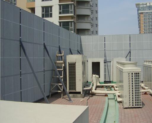 由于中央空調室外機組同時存在多種噪聲,需要采取綜合性的降噪處理措施,一般可同時消除風機噪聲及壓縮機噪聲的措施為隔聲罩或隔聲屏障。